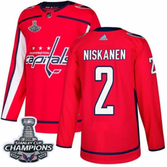Men's Adidas Washington Capitals #2 Matt Niskanen Premier Red Home 2018 Stanley Cup Final Champions NHL Jersey