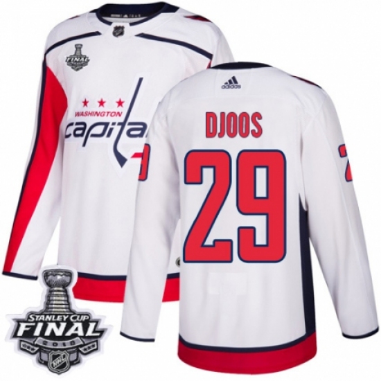 Women's Adidas Washington Capitals #29 Christian Djoos Authentic White Away 2018 Stanley Cup Final NHL Jersey