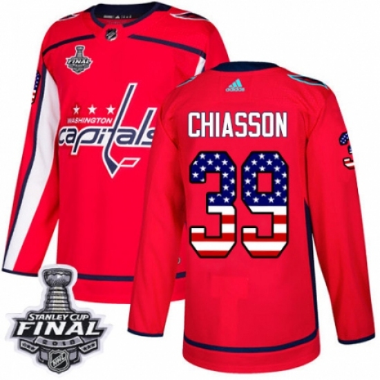 Men's Adidas Washington Capitals #39 Alex Chiasson Authentic Red USA Flag Fashion 2018 Stanley Cup Final Champions NHL Jersey