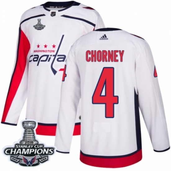 >Youth Adidas Washington Capitals #4 Taylor Chorney Authentic White Away 2018 Stanley Cup Final Champions NHL Jersey
