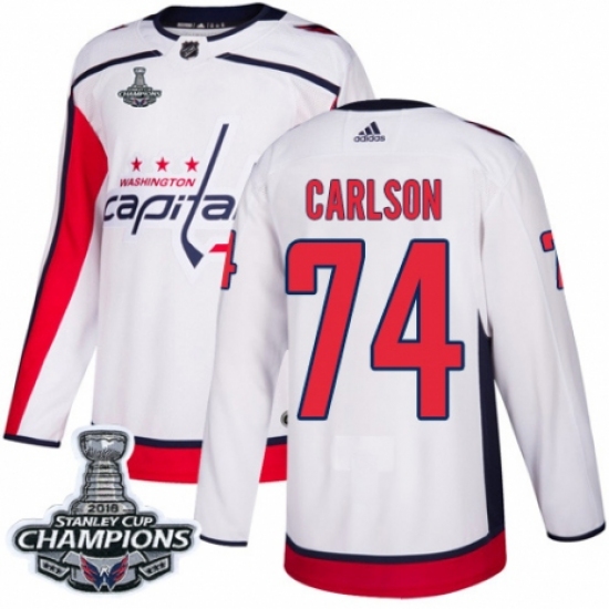 Youth Adidas Washington Capitals #74 John Carlson Authentic White Away 2018 Stanley Cup Final Champions NHL Jersey