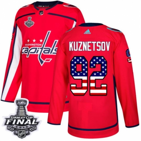 Youth Adidas Washington Capitals #92 Evgeny Kuznetsov Authentic Red USA Flag Fashion 2018 Stanley Cup Final NHL Jersey