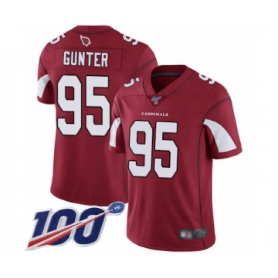 >Youth Arizona Cardinals #95 Rodney Gunter Red Team Color Vapor Untouchable Limited Player 100th Season Football Jersey
