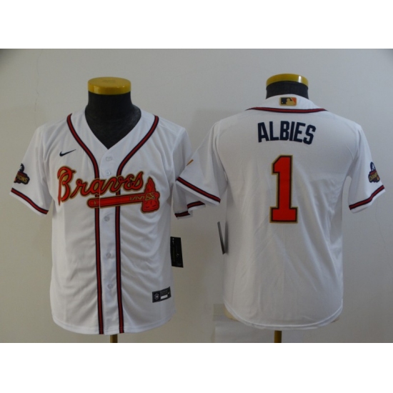 Youth Atlanta Braves #1 Ozzie Albies Nike White 2022 Gold Program Authentic Player Jersey