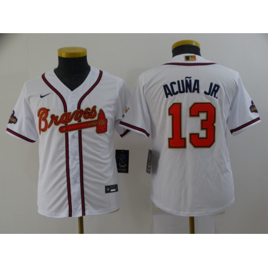 >Youth Atlanta Braves #13 Ronald Acuna Jr. Nike White 2022 Gold Program Authentic Player Jersey