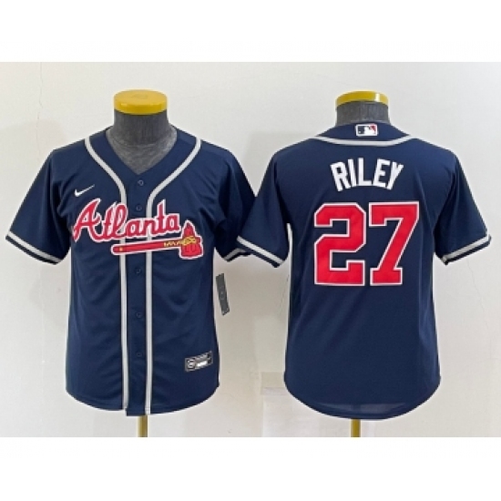 >Youth Atlanta Braves #27 Austin Riley Navy Blue Stitched MLB Cool Base Nike Jersey