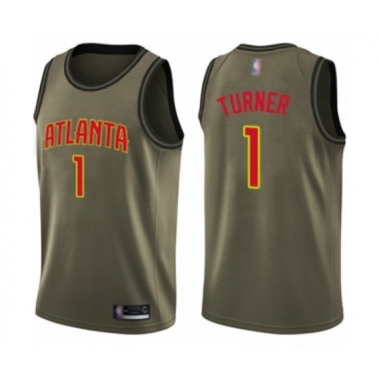 >Youth Atlanta Hawks #1 Evan Turner Swingman Green Salute to Service Basketball Jersey