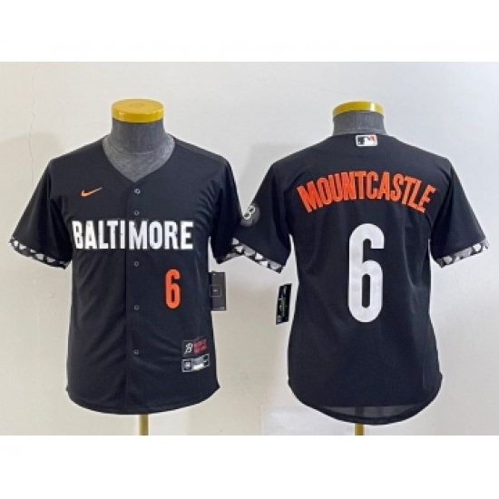 >Youth Baltimore Orioles #6 Ryan Mountcastle Number Black 2023 City Connect Cool Base Stitched Jersey
