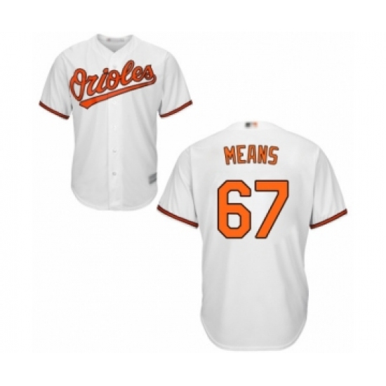 >Youth Baltimore Orioles #67 John Means Authentic White Home Cool Base Baseball Jersey