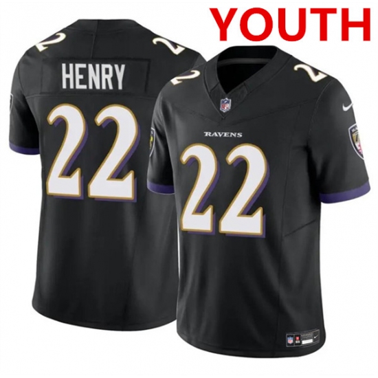 Youth Baltimore Ravens #22 Derrick Henry Black 2023 F.U.S.E. Football Stitched Jersey