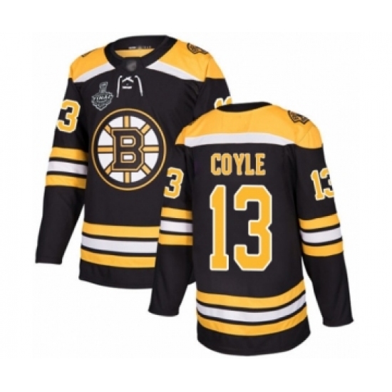>Youth Boston Bruins #13 Charlie Coyle Authentic Black Home 2019 Stanley Cup Final Bound Hockey Jersey