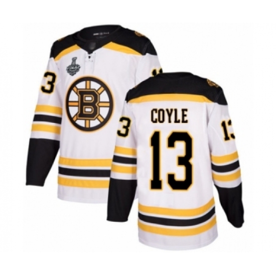 >Youth Boston Bruins #13 Charlie Coyle Authentic White Away 2019 Stanley Cup Final Bound Hockey Jersey