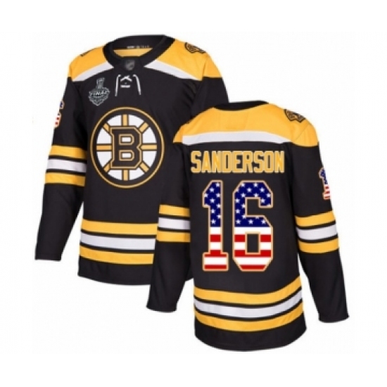 Youth Boston Bruins #16 Derek Sanderson Authentic Black USA Flag Fashion 2019 Stanley Cup Final Bound Hockey Jersey