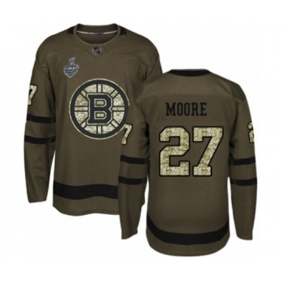 Youth Boston Bruins #27 John Moore Authentic Green Salute to Service 2019 Stanley Cup Final Bound Hockey Jersey