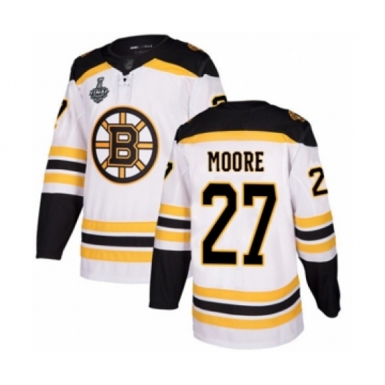 Youth Boston Bruins #27 John Moore Authentic White Away 2019 Stanley Cup Final Bound Hockey Jersey