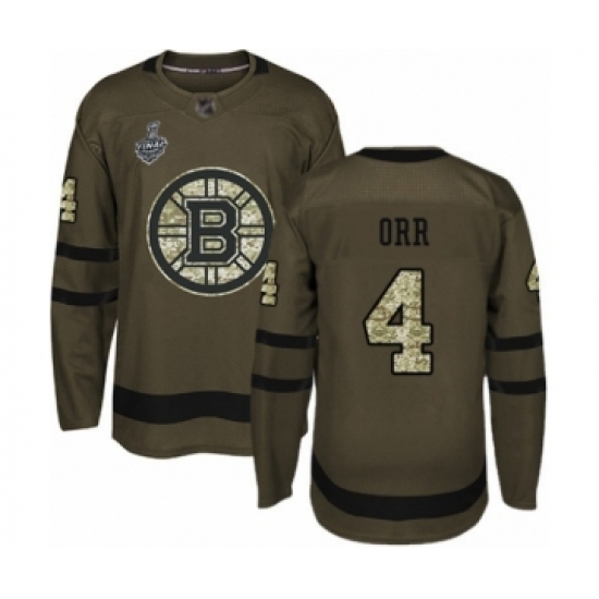 Youth Boston Bruins #4 Bobby Orr Authentic Green Salute to Service 2019 Stanley Cup Final Bound Hockey Jersey