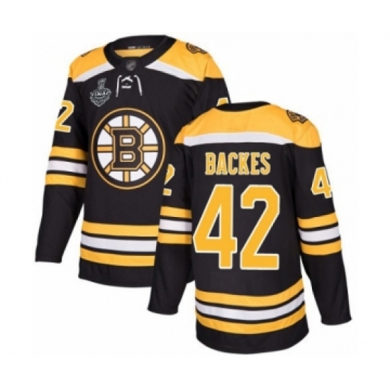 >Youth Boston Bruins #42 David Backes Authentic Black Home 2019 Stanley Cup Final Bound Hockey Jersey