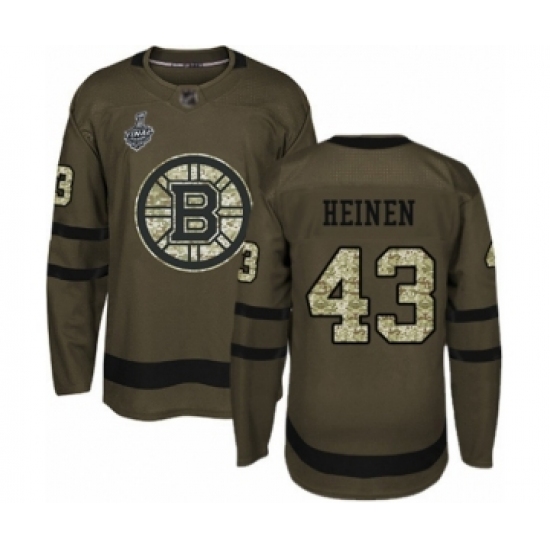 Youth Boston Bruins #43 Danton Heinen Authentic Green Salute to Service 2019 Stanley Cup Final Bound Hockey Jersey