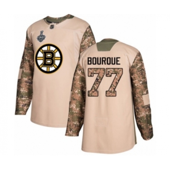 >Youth Boston Bruins #77 Ray Bourque Authentic Camo Veterans Day Practice 2019 Stanley Cup Final Bound Hockey Jersey