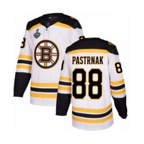 >Youth Boston Bruins #88 David Pastrnak Authentic White Away 2019 Stanley Cup Final Bound Hockey Jersey