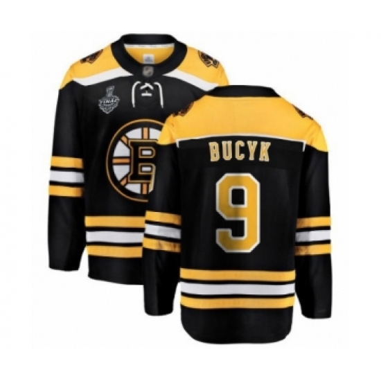 Men's Boston Bruins #9 Johnny Bucyk Authentic Black Home 2019 Stanley Cup Final Bound Hockey Jersey