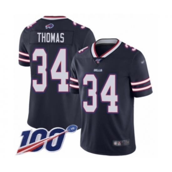 >Youth Buffalo Bills #34 Thurman Thomas Limited Navy Blue Inverted Legend 100th Season Football Jersey