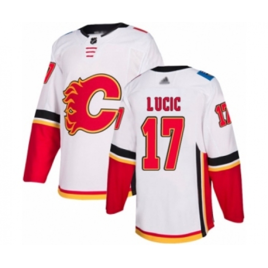 >Youth Calgary Flames #17 Milan Lucic Authentic White Away Hockey Jersey
