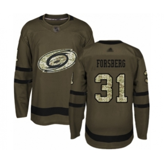 Youth Carolina Hurricanes #31 Anton Forsberg Authentic Green Salute to Service Hockey Jersey