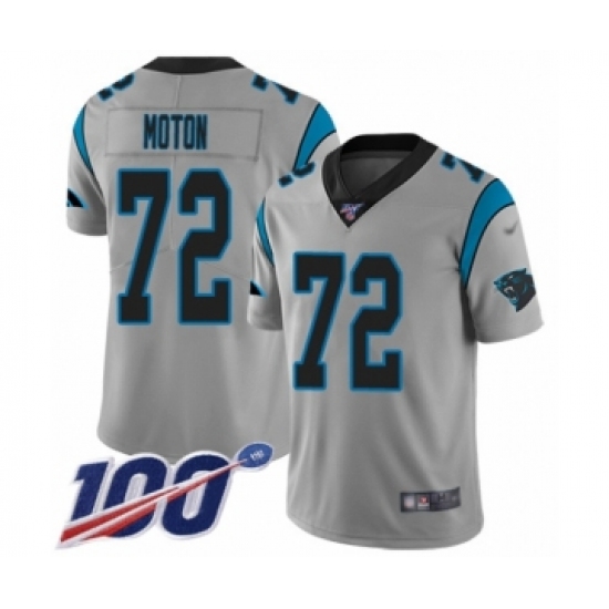 >Youth Carolina Panthers #72 Taylor Moton Silver Inverted Legend Limited 100th Season Football Jersey