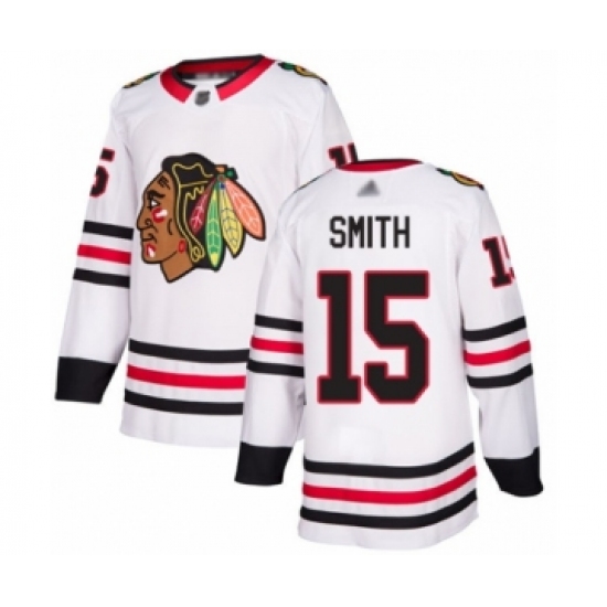 Youth Chicago Blackhawks #15 Zack Smith Authentic White Away Hockey Jersey