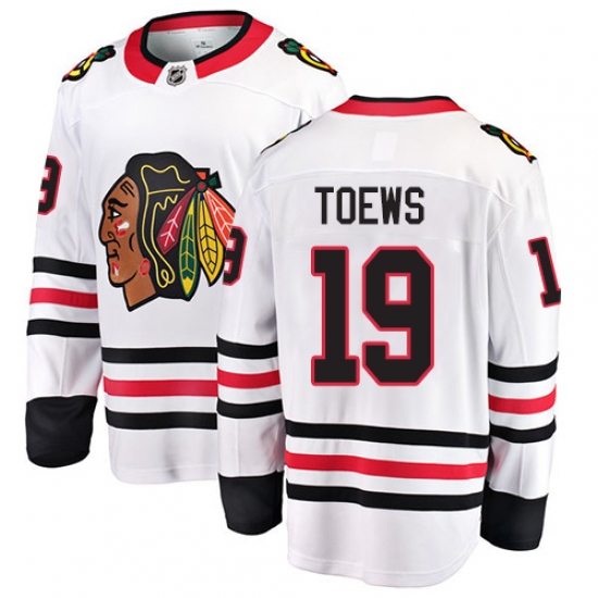 Home>NHL>Chicago Blackhawks>Jonathan Toews>Youth Chicago Blackhawks #19 Jonathan Toews Fanatics Branded White Away Breakaway NHL Jersey
