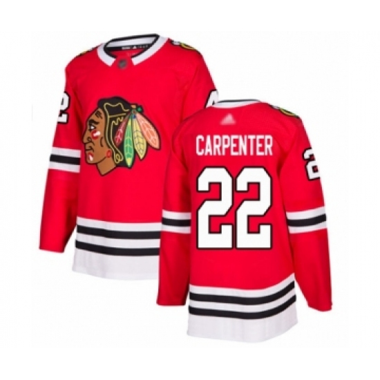 >Youth Chicago Blackhawks #22 Ryan Carpenter Authentic Red Home Hockey Jersey