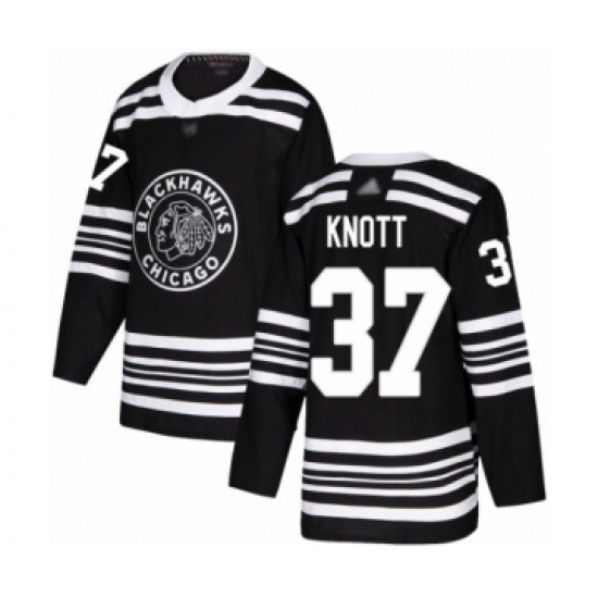 >Youth Chicago Blackhawks #37 Graham Knott Authentic Black Alternate Hockey Jersey