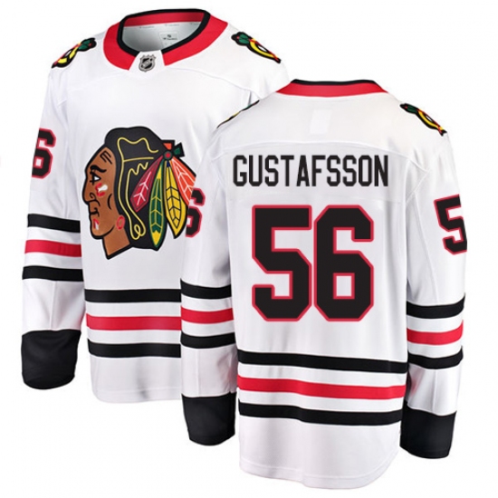 Home>NHL>Chicago Blackhawks>Erik Gustafsson>Youth Chicago Blackhawks #56 Erik Gustafsson Fanatics Branded White Away Breakaway NHL Jersey