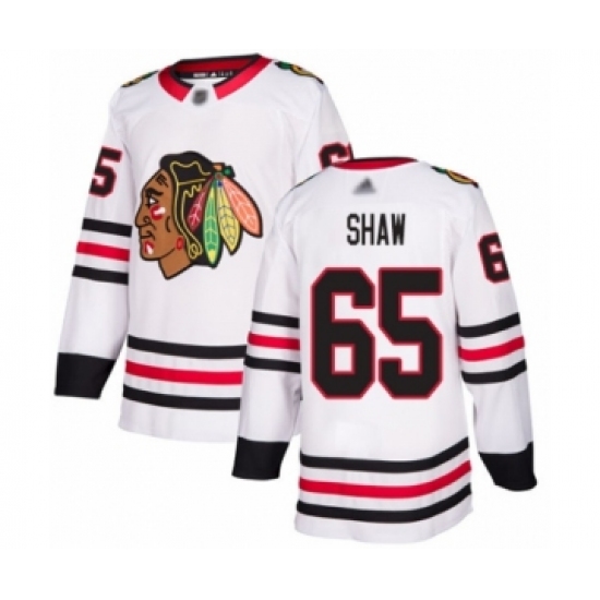 Youth Chicago Blackhawks #65 Andrew Shaw Authentic White Away Hockey Jersey