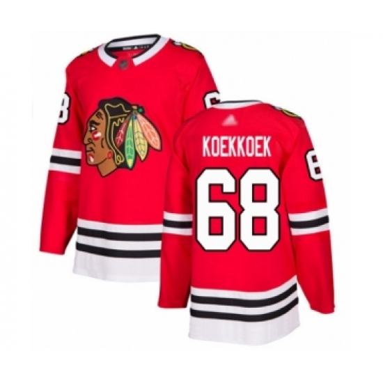 >Youth Chicago Blackhawks #68 Slater Koekkoek Authentic Red Home Hockey Jersey