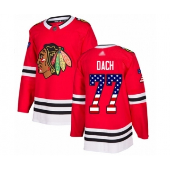 >Youth Chicago Blackhawks #77 Kirby Dach Authentic Red USA Flag Fashion Hockey Jersey