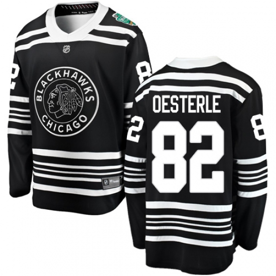 >Youth Chicago Blackhawks #82 Jordan Oesterle Black 2019 Winter Classic Fanatics Branded Breakaway NHL Jersey