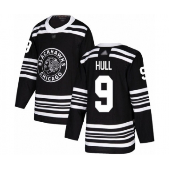 >Youth Chicago Blackhawks #9 Bobby Hull Authentic Black Alternate Hockey Jersey