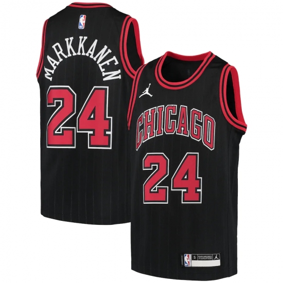 Youth Chicago Bulls #24 Lauri Markkanen Swingman Black Finished Basketball Jersey - Statement Edition
