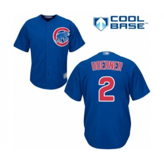 >Youth Chicago Cubs #2 Nico Hoerner Authentic Royal Blue Alternate Cool Base Baseball Player Jersey