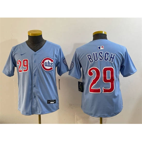 >Youth Chicago Cubs #29 Michael Busch Blue Limited Stitched Baseball Jersey