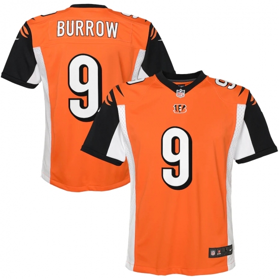 >Youth Cincinnati Bengals #9 Joe Burrow Nike Orange 2020 NFL Draft First Round Pick Game Jersey.webp