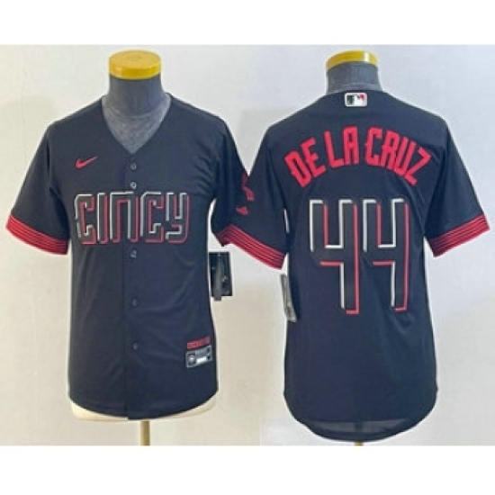 >Youth Cincinnati Reds #44 Elly De La Cruz Black 2023 City Connect Cool Base Stitched Jersey 1