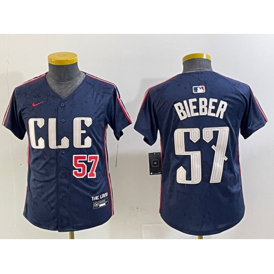 >Youth Cleveland Guardians #57 Shane Bieber Number Navy 2024 City Connect Limited Stitched Jerseys