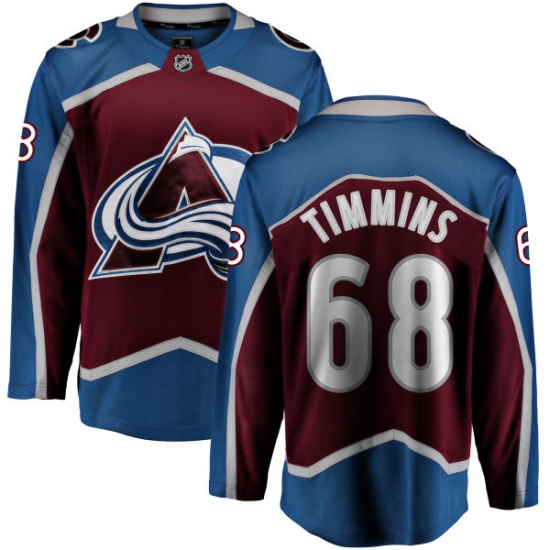Home>NHL>Colorado Avalanche>Conor Timmins>Youth Colorado Avalanche #68 Conor Timmins Fanatics Branded Maroon Home Breakaway NHL Jersey