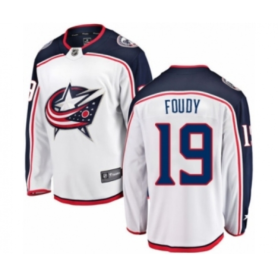 Women's Columbus Blue Jackets #19 Liam Foudy Authentic White Away Fanatics Branded Breakaway NHL Jersey