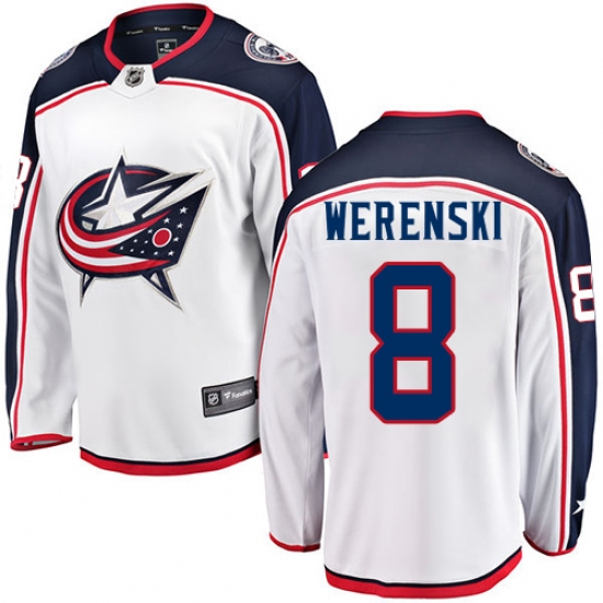 Home>NHL>Columbus Blue Jackets>Zach Werenski>Youth Columbus Blue Jackets #8 Zach Werenski Fanatics Branded White Away Breakaway NHL Jersey
