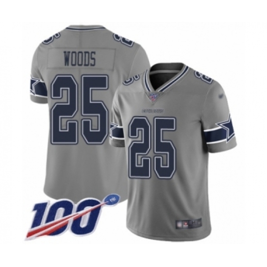 >Youth Dallas Cowboys #25 Xavier Woods Limited Gray Inverted Legend 100th Season Football Jersey