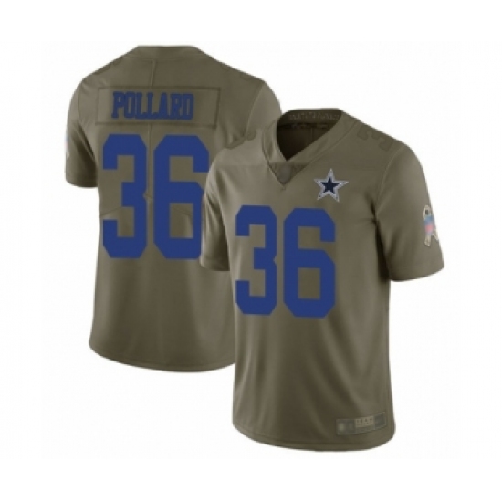 >Youth Dallas Cowboys #36 Tony Pollard Limited Olive 2017 Salute to Service Football Jersey
